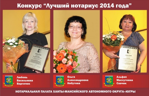 По итогам 2014 года победителями профессионального конкурса нотариусов стали Любовь Варгатюк и Ольга Небутова из Нижневартовска и Альфия Савчик из Радужного.