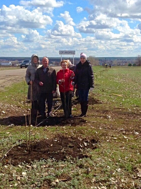 По предложению члена Правления НПВО В.А. Коровиной Среднеикорецкому сельскому поселению была оказана финансовая поддержка в размере 85.000 рублей, на которые и были куплены саженцы.