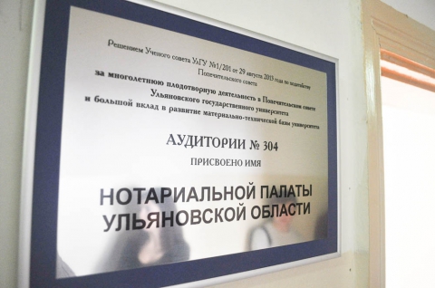 Одна из аудиторий, открытых в этот день, носит имя Нотариальной палаты Ульяновской области. Эта аудитория была отремонтирована и оснащена техникой на средства НПУО. В помещении также размещен стенд с информацией о нотариальной палате и её участии в Попечительском совете Ульяновского государственного университета.