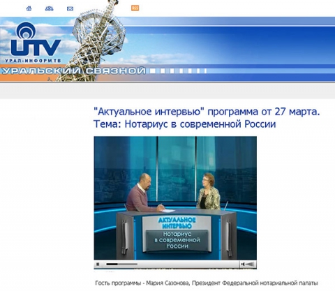 А уже 27 марта, в эфире телеканала «Урал-информ ТВ», в программе «Актуальное интервью» президент Федеральной нотариальной палаты Мария Сазонова ответила на вопросы ведущего о роли и месте нотариуса в современной российской правовой системе. Программу с участием президента ФНП смотрите на нашем сайте в разделе «Интервью и видеоновости».
