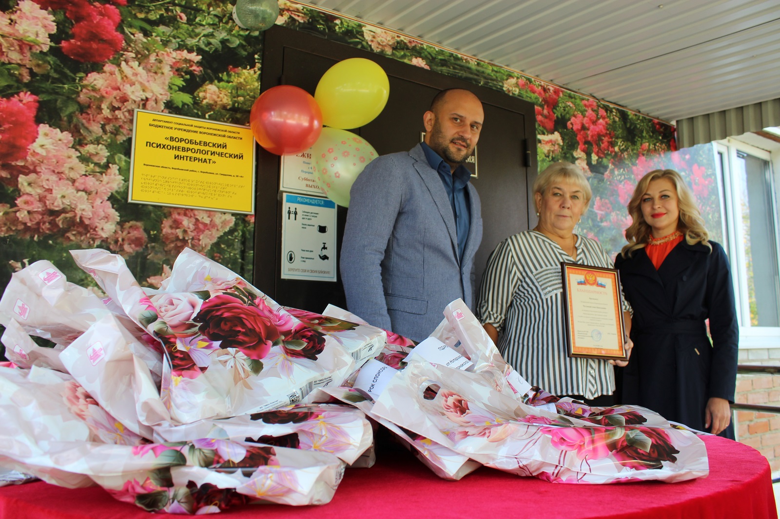 Кроме того, с целью поздравить старшее поколение с праздником члены Совета молодежи Маклакова Марина Михайловна и Мартиросян Сергей Иванович 1 октября посетили Воробьевский психоневрологический интернат, расположенный в с. Воробьевка Воробьевского района Воронежской области. Марина Михайловна и Сергей Иванович передали от Нотариальной палаты Воронежской области подарки для 90 подопечных инетрната. Директор Валентина Петровна Уварова поблагодарила Президента Нотариальной палаты Воронежской области Анну Николаевну Чугунову за оказанную благотворительную помощь, неравнодушное отношение к людям пожилого возраста, пожелала удачи в работе и трудовых достижений.