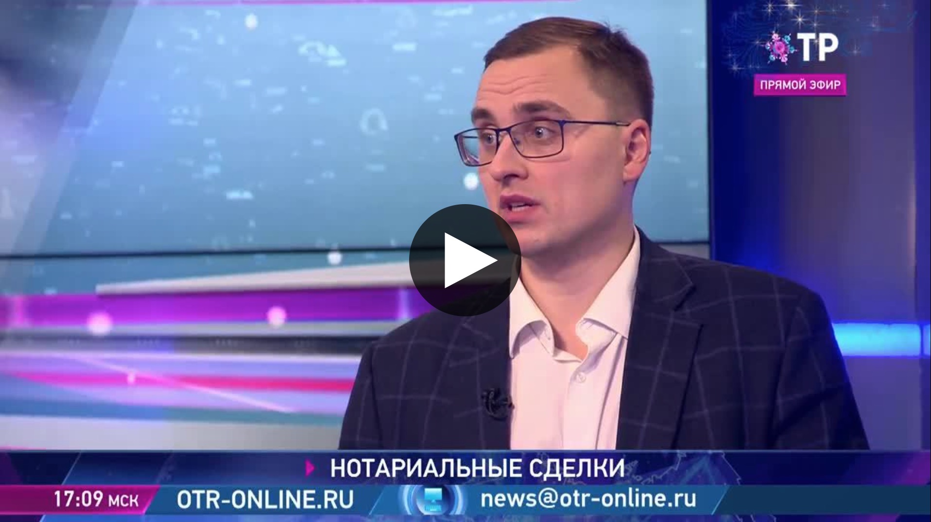Посмотреть запись эфира можно на сайте телеканала ОТР: https://otr-online.ru/programmi/segodnya-v-rossii/notariusi-podvodyat-itogi-77271.html