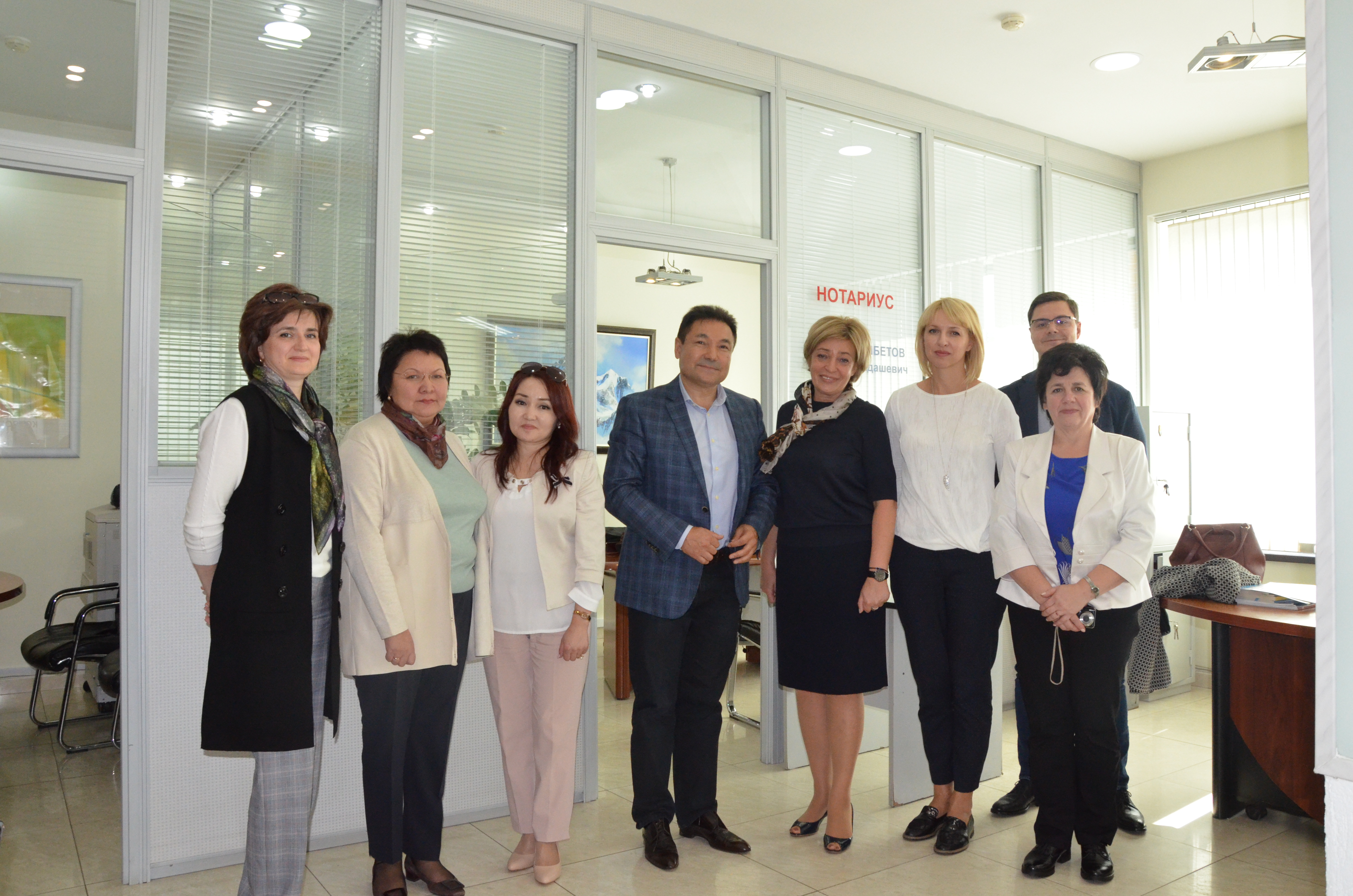 Стажировка началась с посещения офисов нотариусов города Астаны. Нотариусы Туремурат Дильмухамбетов и Ажар Коргамбекова приняли гостей в своих конторах и ознакомили их с принципами работы электронного реестра и нотариальной базы ЕНИС.