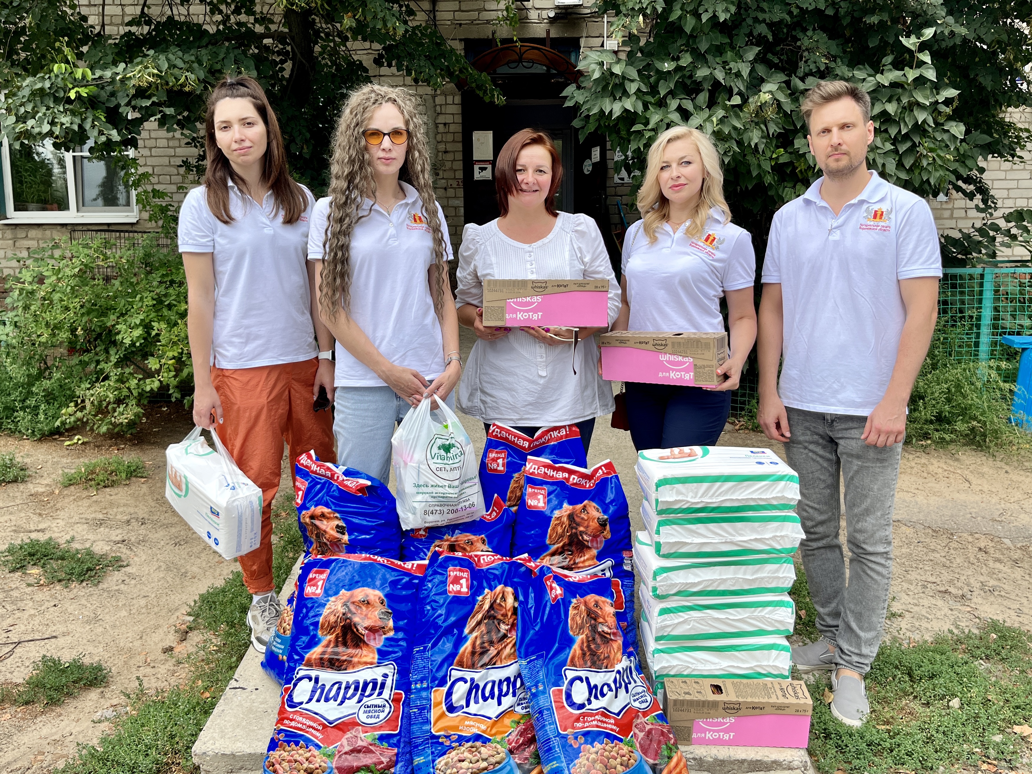 20 августа 2022 года члены Совета молодежи: Истомина Мария, Маклакова Марина, Филева Марта и Член Совета молодых нотариусов – Меренков Дмитрий посетили ветеринарный центр « Друзья» и передали медикаменты, корм и средства гигиены, приобретённые Нотариальной палатой Воронежской области для четвероногих обитателей госпиталя.