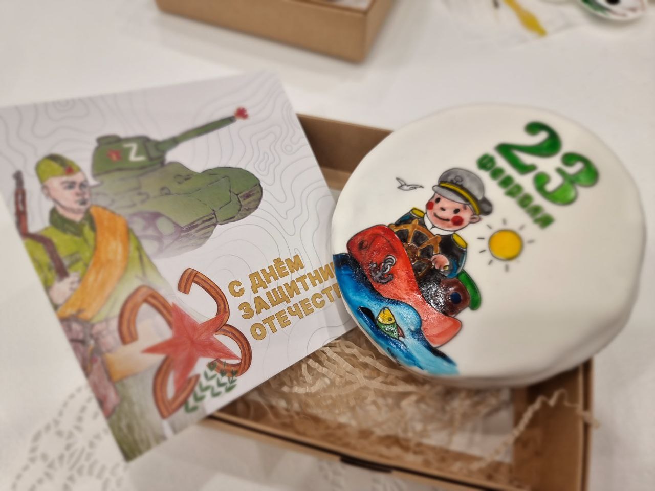 Ребята в возрасте от 5 до 14 лет собрались вместе, чтобы самым заботливым образом расписать имбирные пряники и посвятить их Дню защитника Отечества.