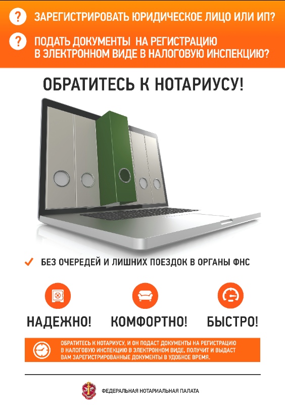 Изменения в «Основы законодательства Российской Федерации о нотариате», которые вступили в силу с 1 января 2016 года, дали возможность нотариусам оказывать гражданам помощь в регистрации ИП. Эти изменения значительно упростили жизнь граждан, желающих стать индивидуальными предпринимателями. Для регистрации ИП достаточно обратиться в ближайшую нотариальную контору. Нотариус примет пакет документов, необходимых для регистрации, и сам осуществит всю процедуру взаимодействия с налоговым органом. Нотариус отправит документы в налоговый орган по месту регистрации обратившегося в электронном виде, заверив их своей цифровой подписью. Нотариус может не только отправлять документы в налоговый орган в электронной форме для регистрации индивидуального предпринимателя, но и получать готовые документы из налогового органа в электронной форме и выдать их предпринимателю в форме электронных документов. Также нотариус может перевести документы в бумажную форму и выдать на руки предпринимателю. При этом срок регистрации при использовании услуг нотариуса составляет пять дней.